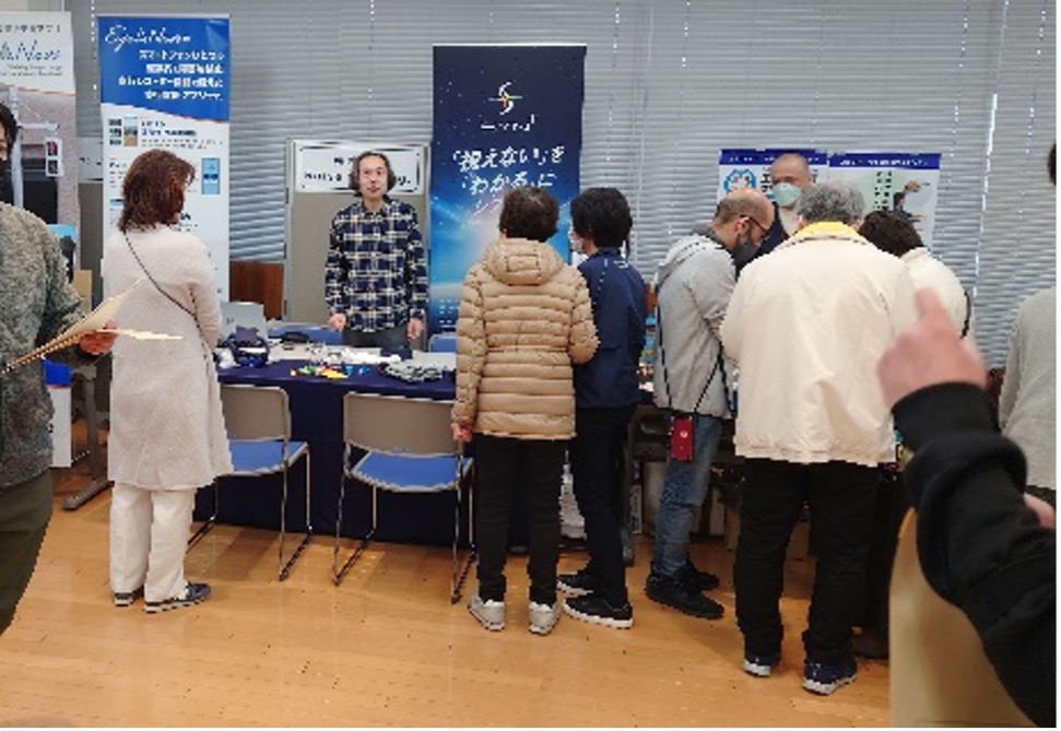 体験会では、ガイドさんに頼らずに数年ぶりに一人で歩くことができました。音声と振動で知らせてくれることで、部屋の出入り口、廊下の幅や、三叉路、袋小路がわかりました。体験時間が短かったので、もっとトレーニングをして外を歩きたい。圧迫感があったので装着感とデザインをもっと良くしてほしいです。